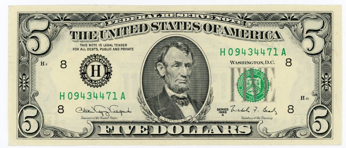 Se trata del billete de cinco dólares del año 1988, ejemplar que tuvo una gran circulación tras su emisión. De acuerdo con algunos reportes, siempre alcanzó un gran valor en las subastas que estuvo presente.
