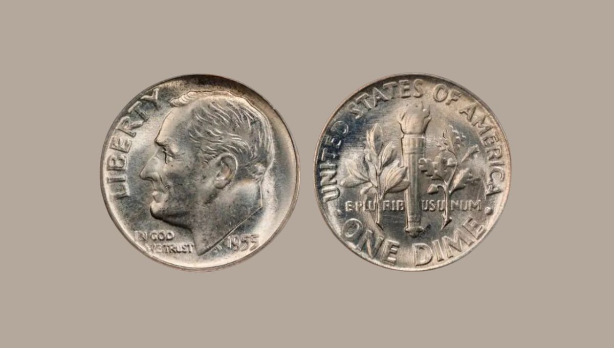 No todas las monedas de 10 centavos de 1955 tienen el mismo valor. Para que un ejemplar alcance la impresionante cifra de 9,500 dólares, debe ser de una categoría específica: la moneda acuñada en la Casa de Moneda de Filadelfia, que carece de las marcas “S” o “D”. De las 12,450,181 piezas producidas, solo unas pocas en condiciones excepcionales alcanzan ese precio elevado.