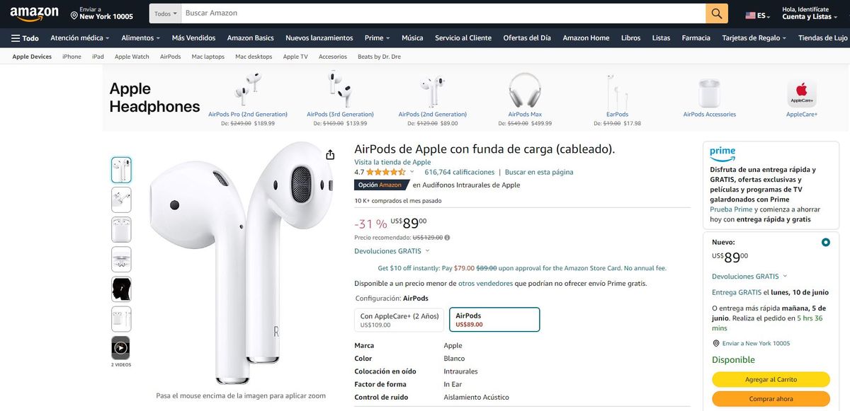 Respira profundo para conocer la oferta de Amazon en AirPods de Apple