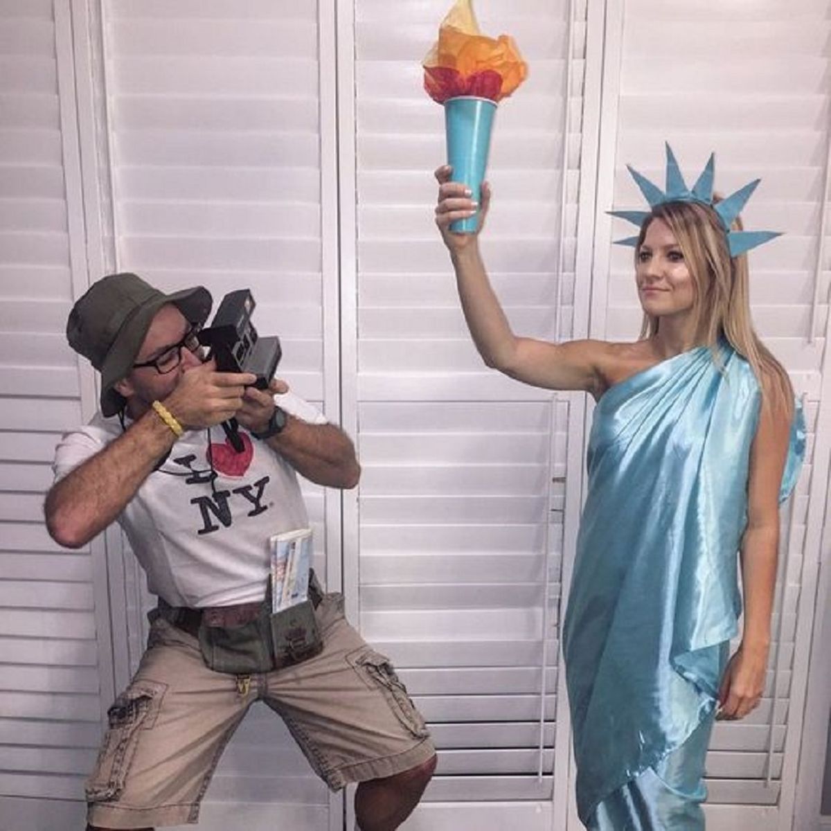 Una idea muy divertida es asemejar la Estatua de la Libertad y el típico turista de Nueva York. De complejidad mediana, precisas un vestido en tonos celestes y la remera clásica de I love NY. Ahora, si nos centramos en referencias más cotidianas, el enchufe y el cable de algún aparato son una idea fácil de reconocer.