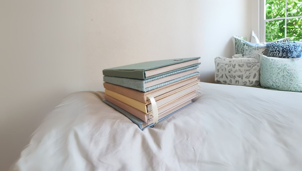 - Para lograr un acabado profesional, se coloca otra tela de diseño diferente en el interior. La tapa frontal incluye un bolsillo decorativo, mientras que en la contratapa se adhieren las hojas recicladas que completarán el anotador.