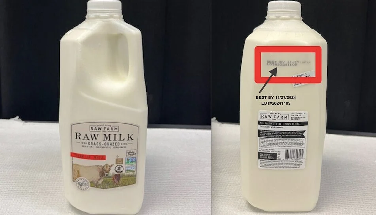 Este virus fue detectado en un lote de leche cruda entera con nata identificado con el número 20241109 la cual fue producida por la compañía Raw Farm, con su sede en Fresno, California, con su fecha de caducidad del 27 noviembre, según informó el Departamento de Salud Pública de California.