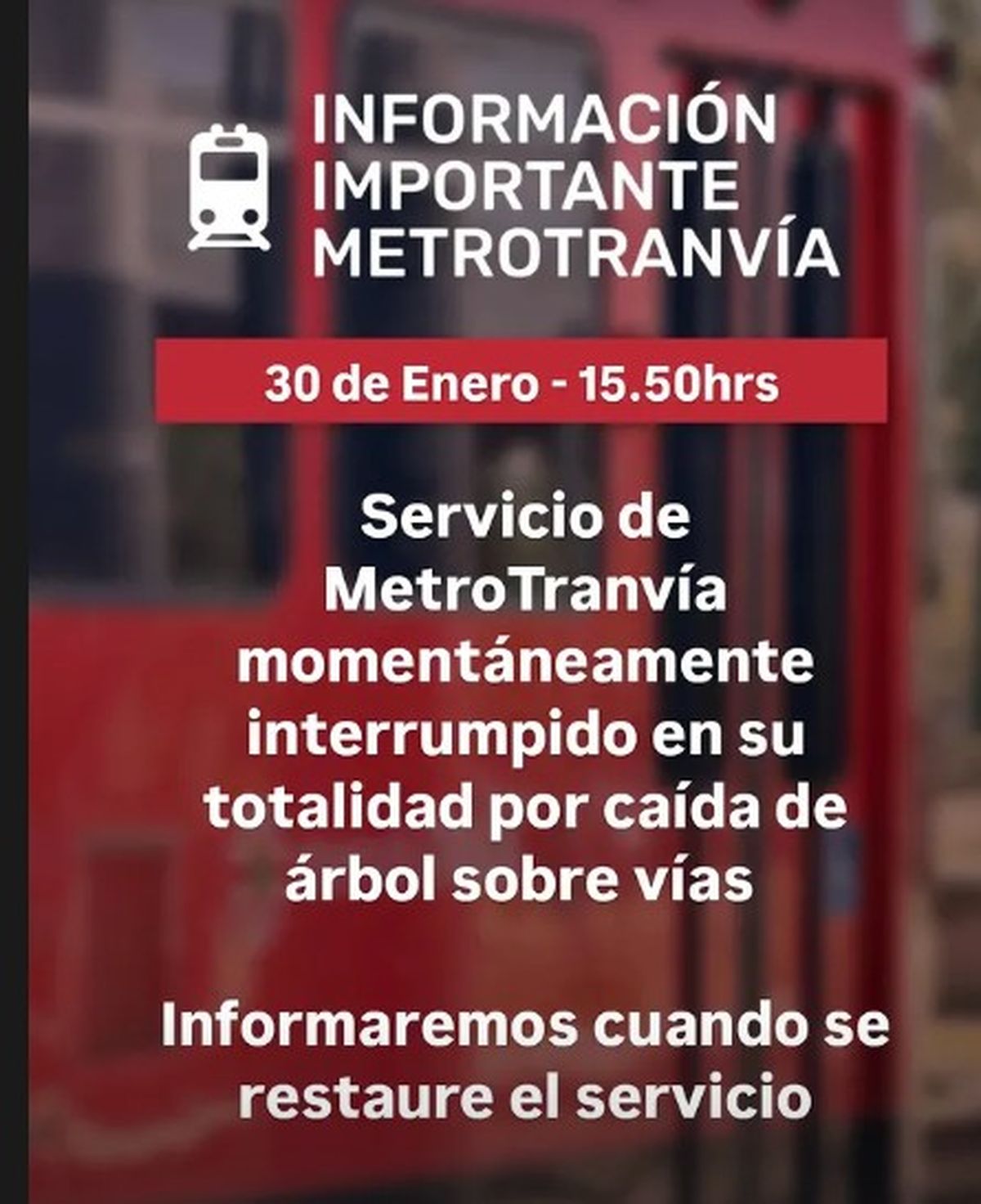 En la tarde de este viernes 30 de enero, el servicio de Metrotranvía debió ser interrumpido por consecuencias de la gran tormenta de granizo, viento y lluvia que afectó al Gran Mendoza.