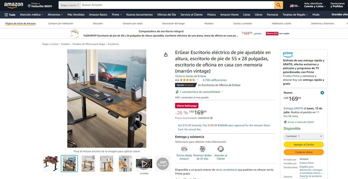 Uno de los productos más populares en este Prime Day es el ErGear escritorio eléctrico de pie ajustable. Con un descuento del 26%, este escritorio pasa de $229,99 a $169,99 dólares. Este escritorio ofrece: