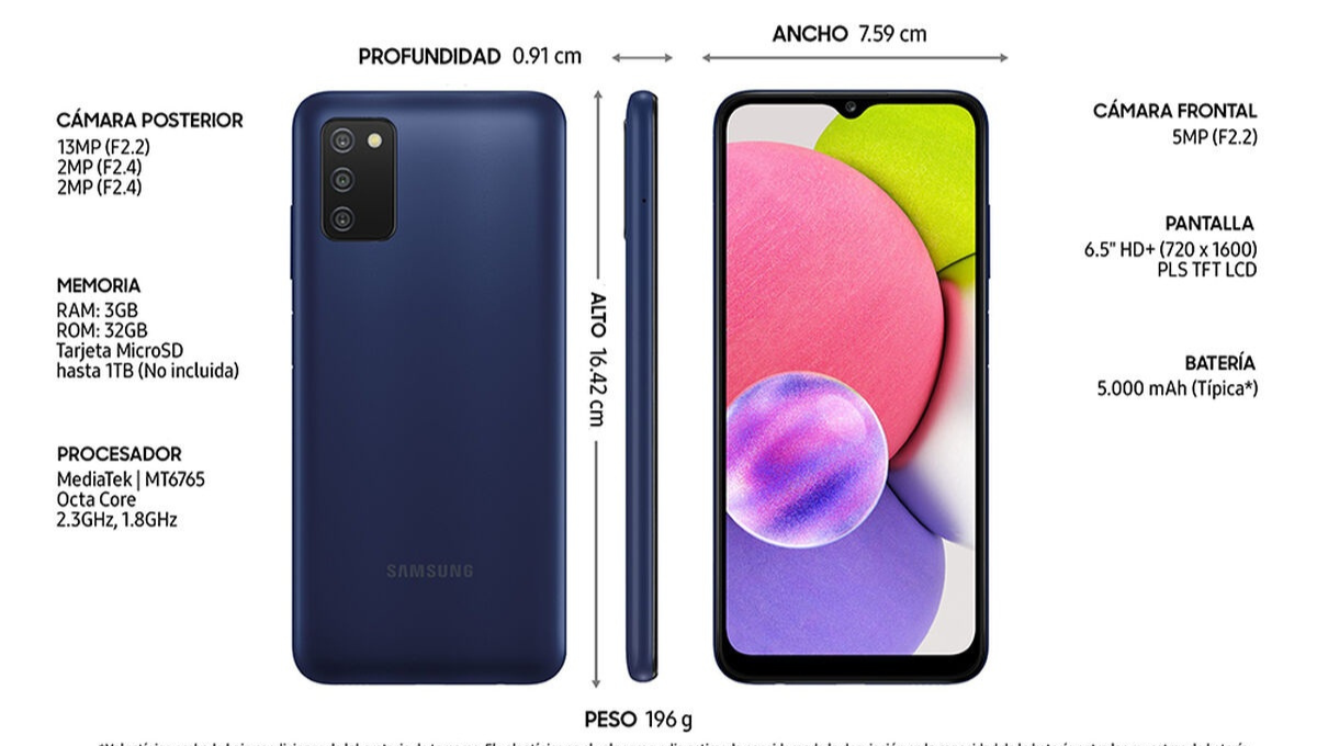 Se trata del Samsung Galaxy A03S el cual tenía un valor de 59 dólares, pero con la rebaja de 20 dólares llega su valor a 39.88 dólares. De esta manera, se perfila como la opción ideal para aquellos padres que quieran hacer un regalo económico a sus niños o precisen de un celular de características básicas para ciertas actividades.