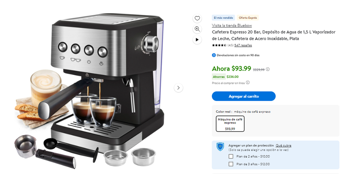 Se trata de una Cafetera Espresso, que está disponible a menos de la mitad de su precio original. Esta oferta express de Walmart se cuenta entre las más vendidas. Te contamos sobre todos los detalles.