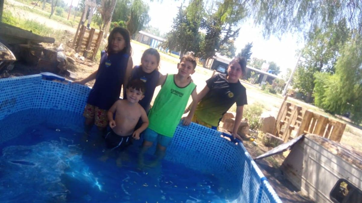 “Los chicos están contentos, y para ellos la pileta es una salvación. Cuando terminaron la escuela, les prometí que la armaría, y aquí está. No hay mucha presión, pero dejamos la manguera y se va llenando despacio”, comenta María, abuela de Brisa (14), Thiago (13), Zoe (10), Nelli (8) y Mateo (4).