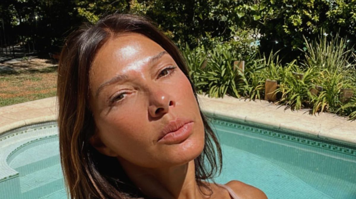 Desde su pileta, Cathy Fulop enloqueció a sus fans con un modelo color nude resaltando su bronceado y, se la jugó posando sin nada de maquillaje y al natural.