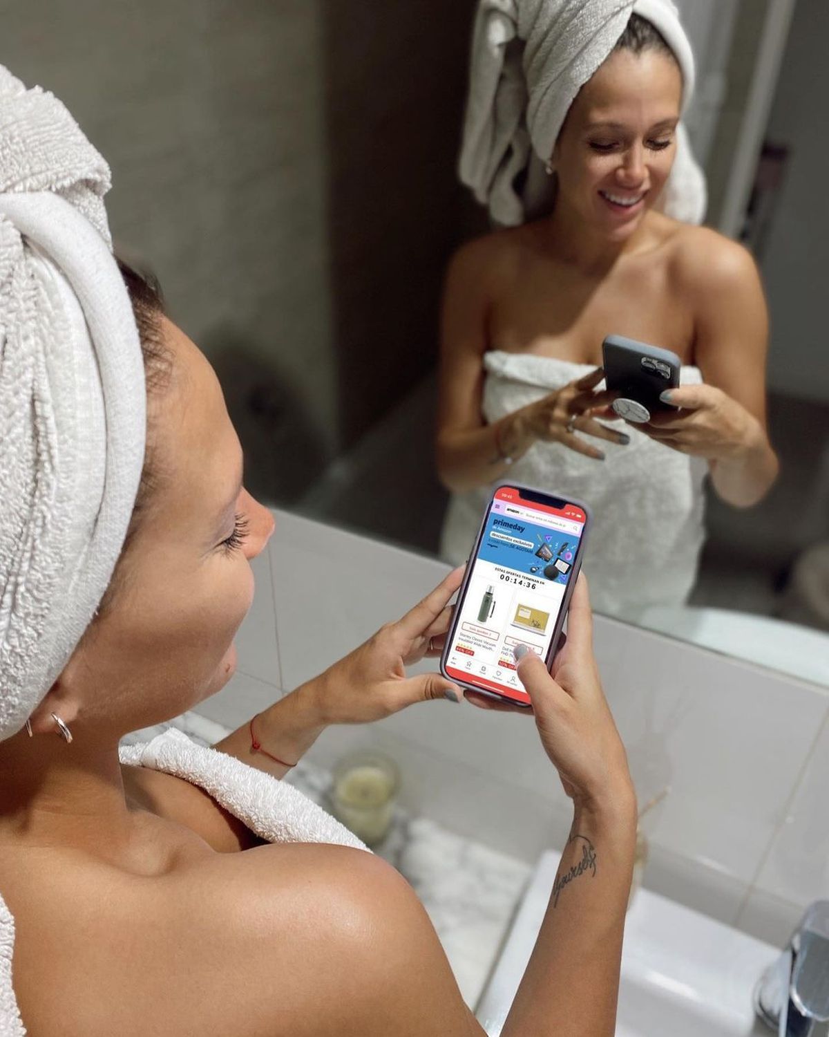Y si bien se trató de una promoción, Barbie se la jugó y compartió una postal recién salida de la ducha. Súper natural y sin maquillaje, la diosa posó frente al espejo con una toalla como su única prenda generando el delirio de todos sus followers.