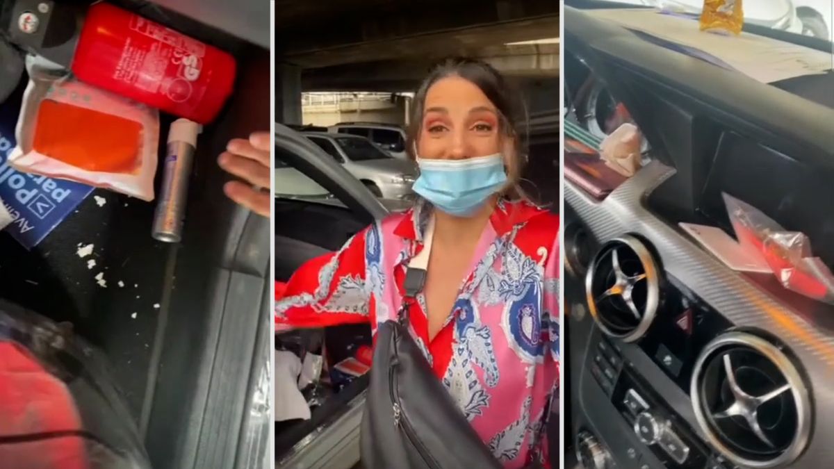 En los divertidos posteos se puede ver el desorden que hay adentro de auto y la cantidad de objetos y productos que lleva Cinthia Fernández en cada viaje.