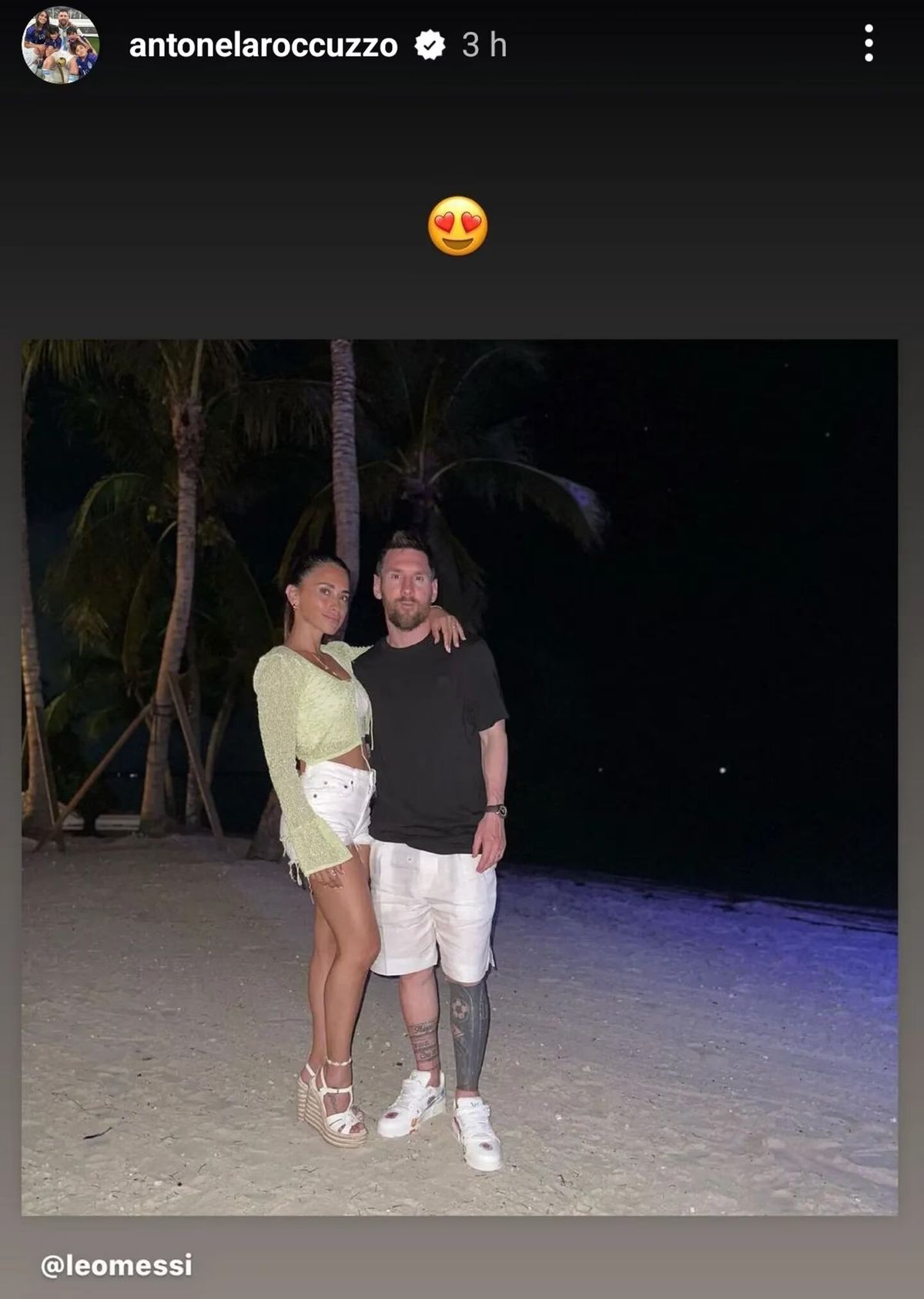 Desde las Bahamas la primera dama del fútbol, Antonela Roccuzzo, encendió las redes sociales al repostear en su cuenta de Instagram una publicación que hizo Messi en su perfil.