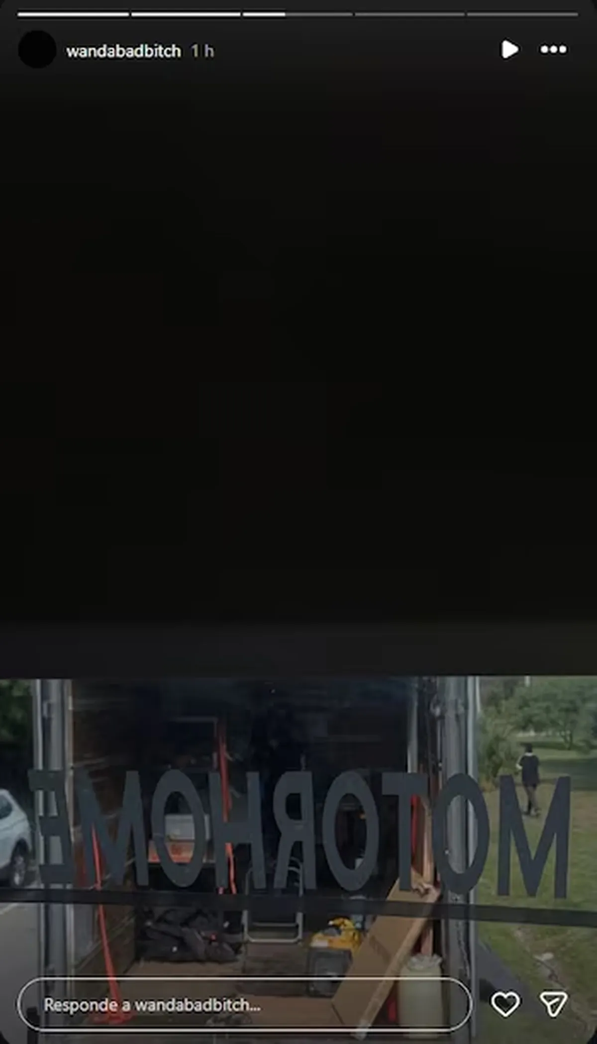 Seguido a esto, Wanda Nara fue por más y publicó una foto del motorhome que está ocupando mientras graba su ficción vertical, lo que fue considerado como un mensaje para la China Suárez.
