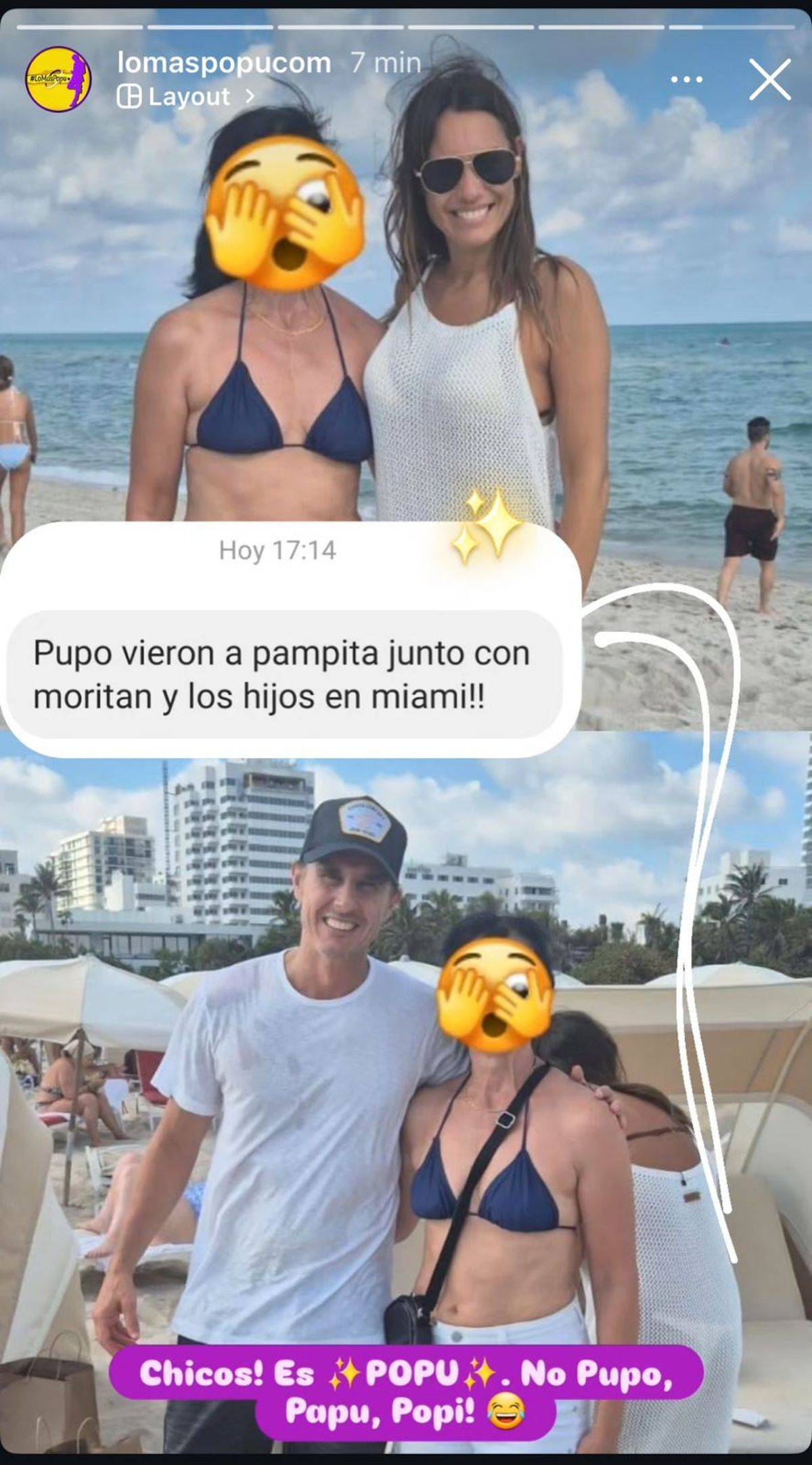 Fue la cuenta de instagram @lomáspop la que compartió la imagen que sacó un turista en Miami acompañandola con una picante información "Vieron a Pampita junto con Moritán y los hijos en Miami!!"
