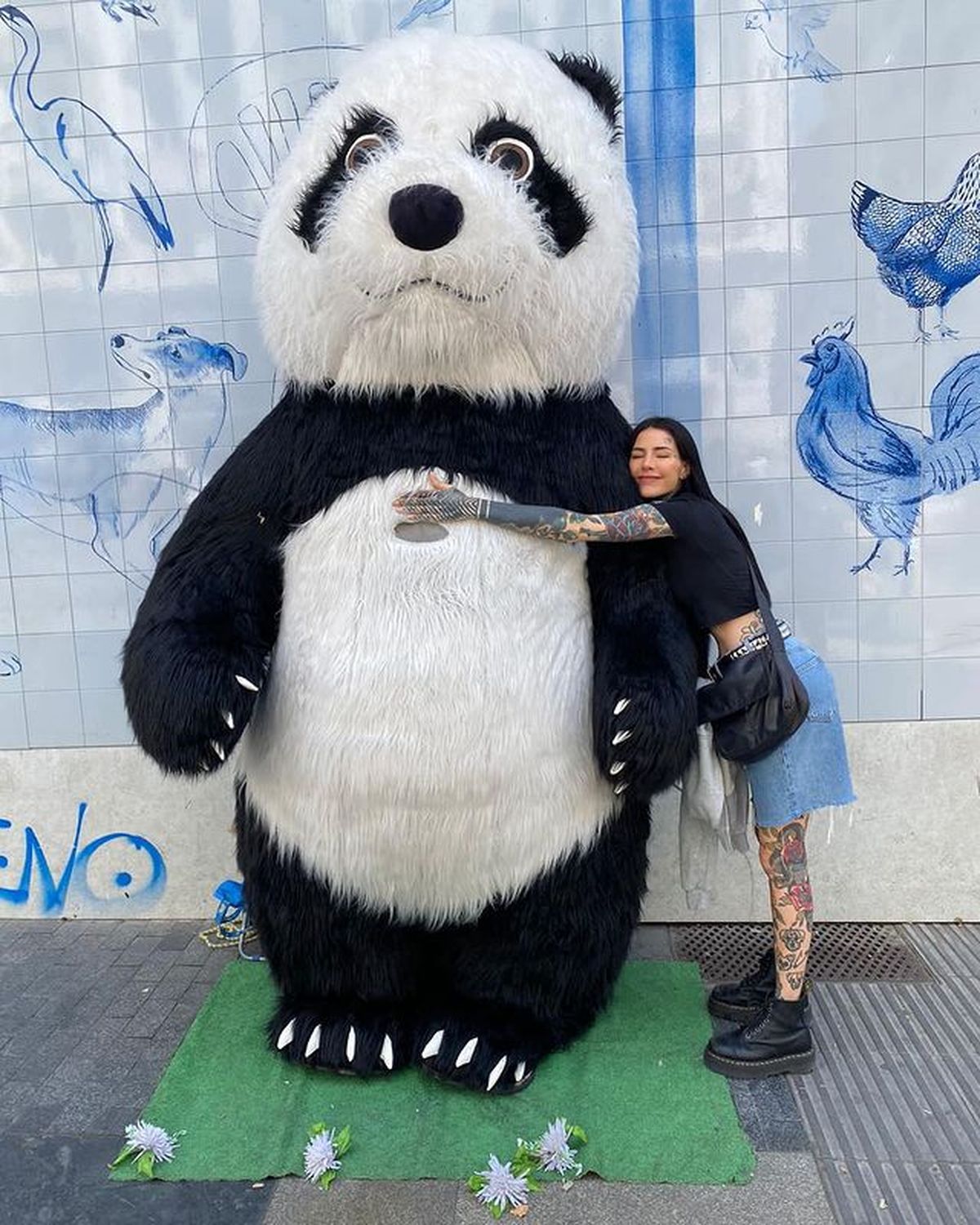 Divertida, Lelé subió fotos abrazando a un hombre disfrazado de oso, lookeada súper canchera y causó furor en las redes.
