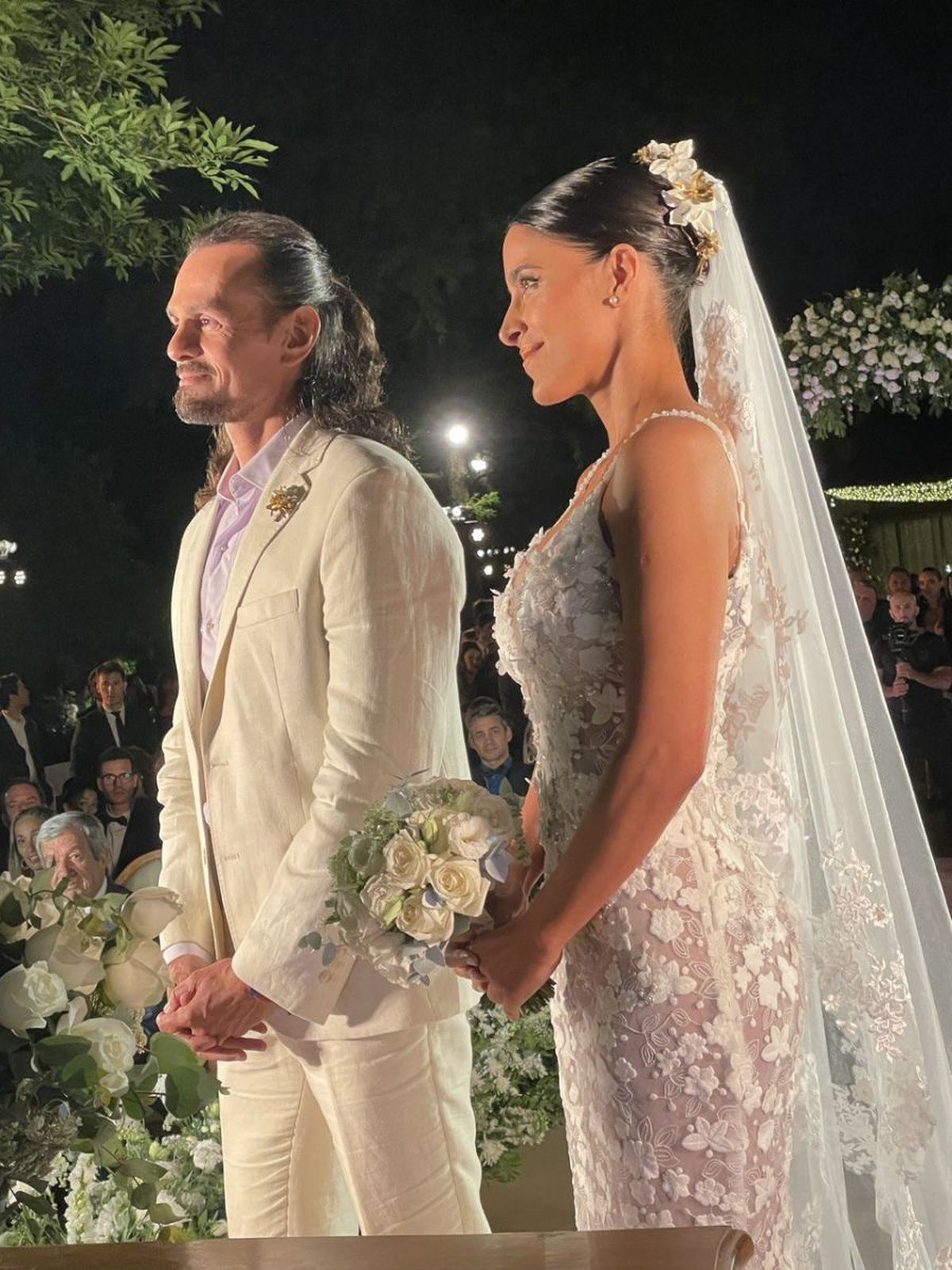 Invitados y amigos viralizaron imágenes de la ceremonia dando a conocer el impactante vestido de novia de Celeste Muriega.