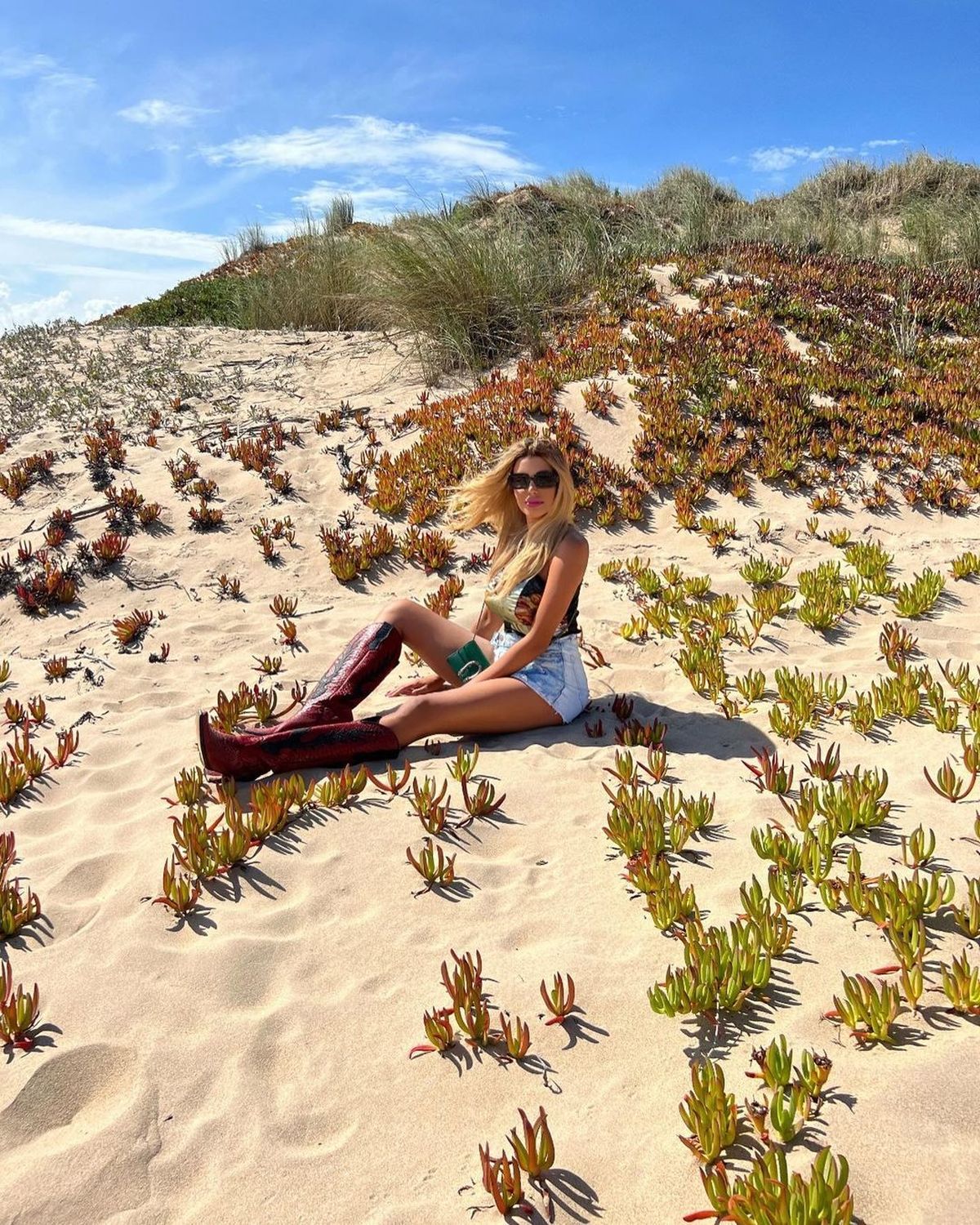 La diosa visitó las dunas y protagonizó una sesió de fotos casera para la que lució unos shorts de jean súper chiquitos. Canchera y siguiendo con la onda playera, la hija de Mariana Nannis lo combinó con unas botas texanas y sus fans se cansaron de elogiarla. "Estás fuerte Carlota", "Divina", "Regia", escribieron.
