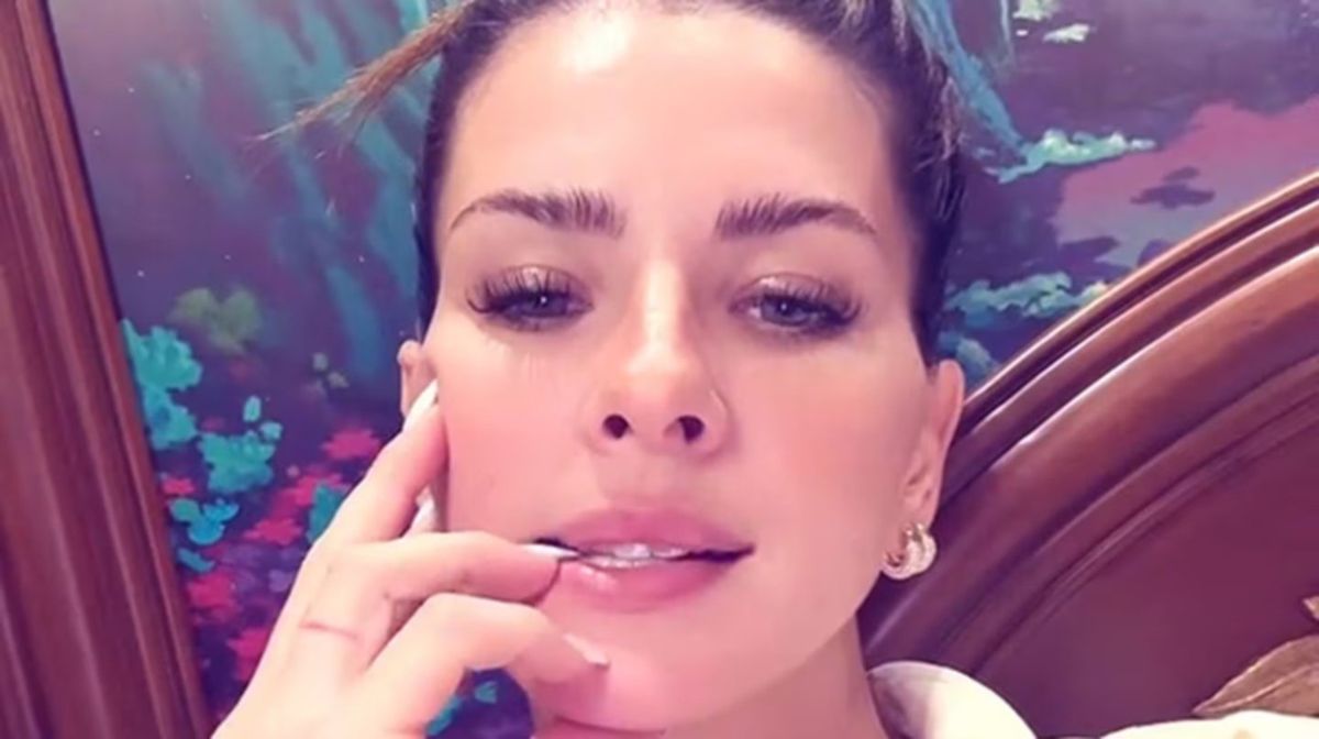 Desde su camarín, la China Suárez se fotografió frente al espejo posando sin corpiñito, con un emoji de víbora cubriendo su escote y melena súper XL.
