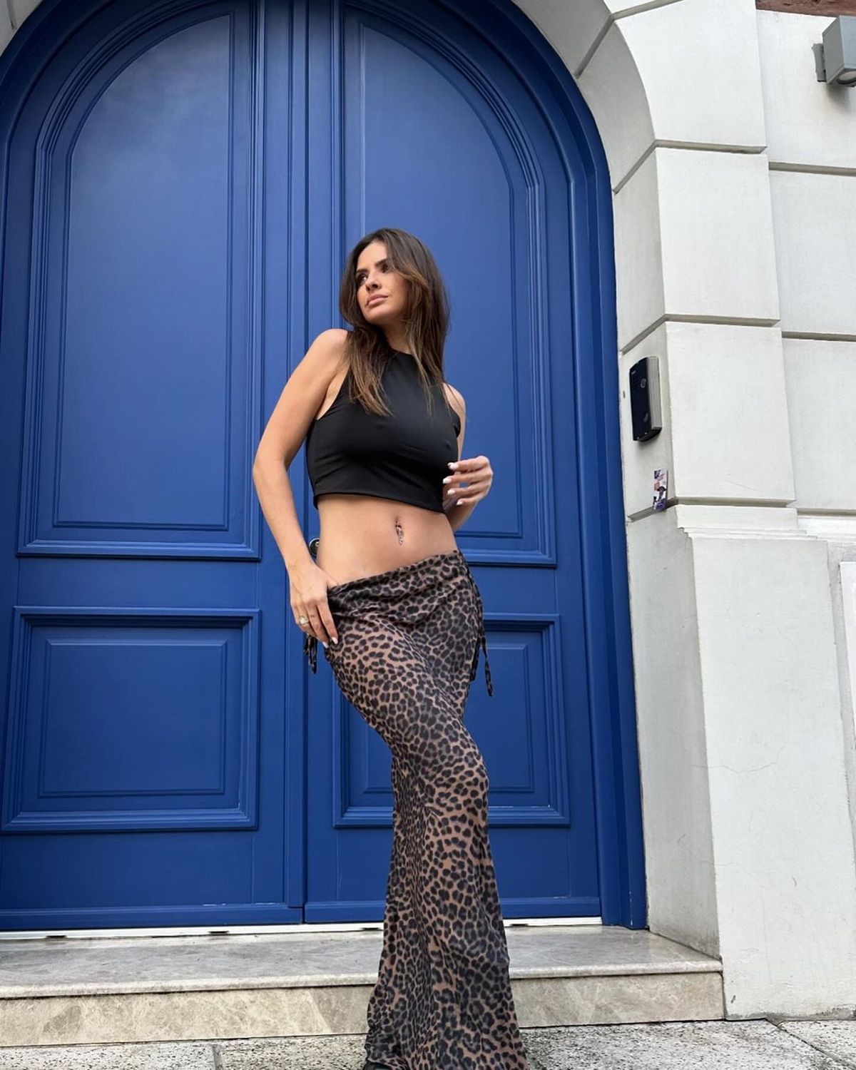 La China Suárez fue por todo con la tendencia animal print furor de la primavera verano que lució en una maxi falda de leopardo ultra ceñida.