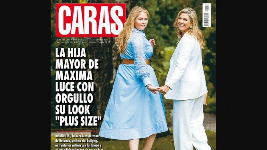 "La hija mayor de Maxima luce con orgullo su look plus size", dice Caras en la tapa que tiene una imagen de Amalia, la joven de 16 años, heredera al trono de Holanda, y su madre argentina Máxima Zorreguieta.