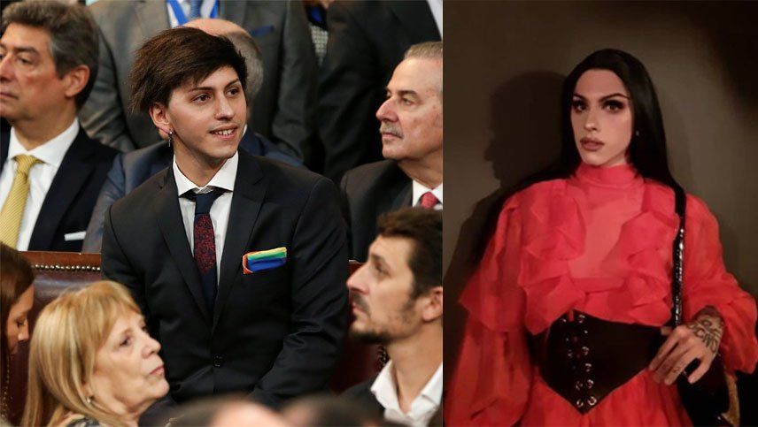 Dyhzy, como ha pedido que lo llamen, festejó sus 25 años y lució un vestido corto rojo con maxi mangas y lo acompañó con un enorme cinturón negro y botas con plataforma, también en negro.