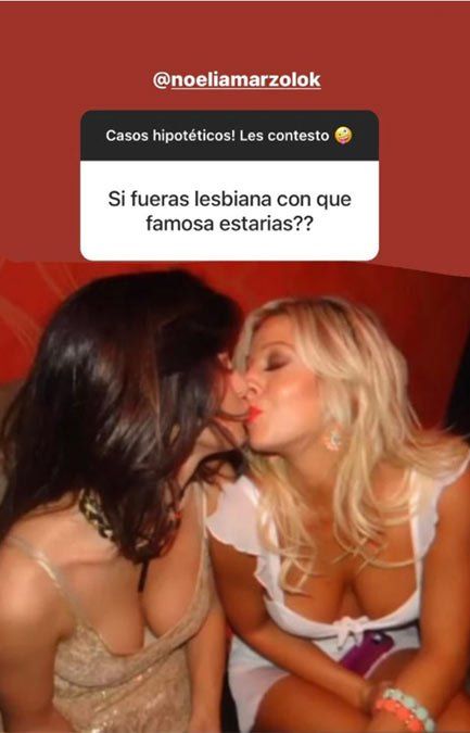 La interacción con sus seguidores es muy importante para Silvina , por eso, en la última charla que tuvo con sus followers una pregunta la sorprendió, pero no la hizo recular. El admirador le preguntó con qué famosa le gustaría tener un encuentro sexual si le gustaran las mujeres y la panelista no dudó en publicar la foto con Noelia Marzol besándose en la boca.