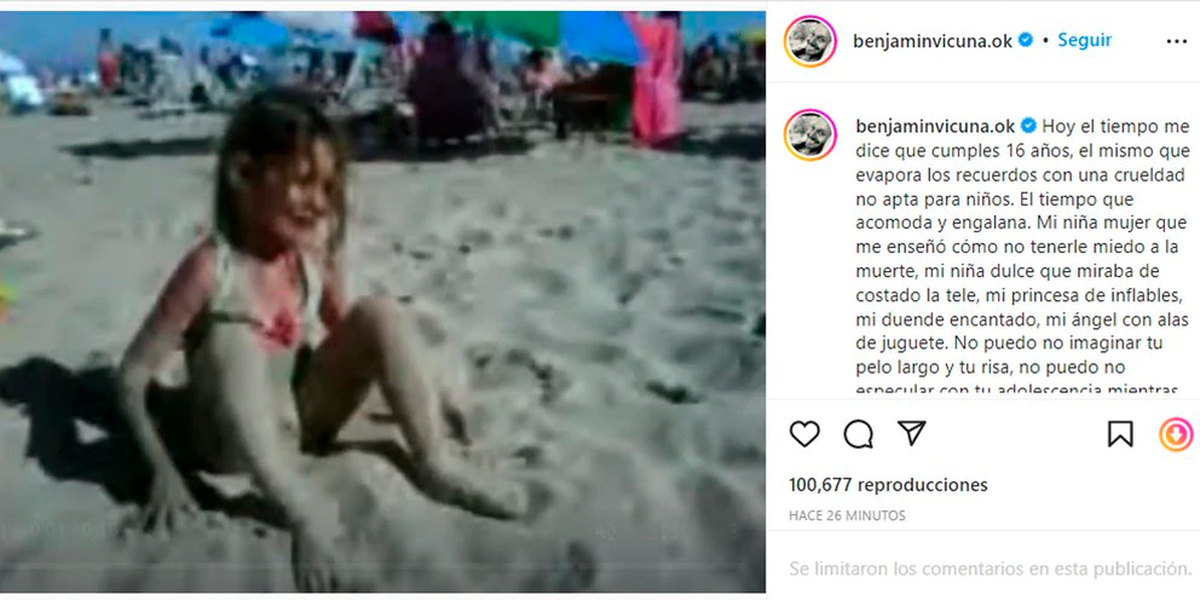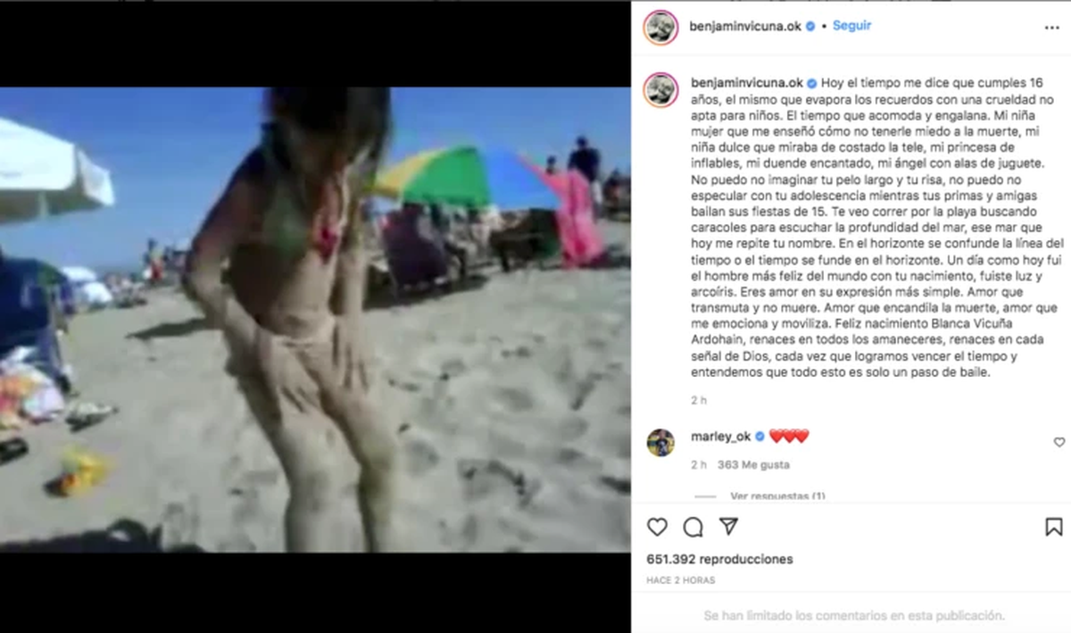 Benjamín Vicuña recordó a su hija Blanca Vicuña Ardohain con un emocionante video. La pequeña cumpliría 16 años y el actor se mostró de lo más conmovido.