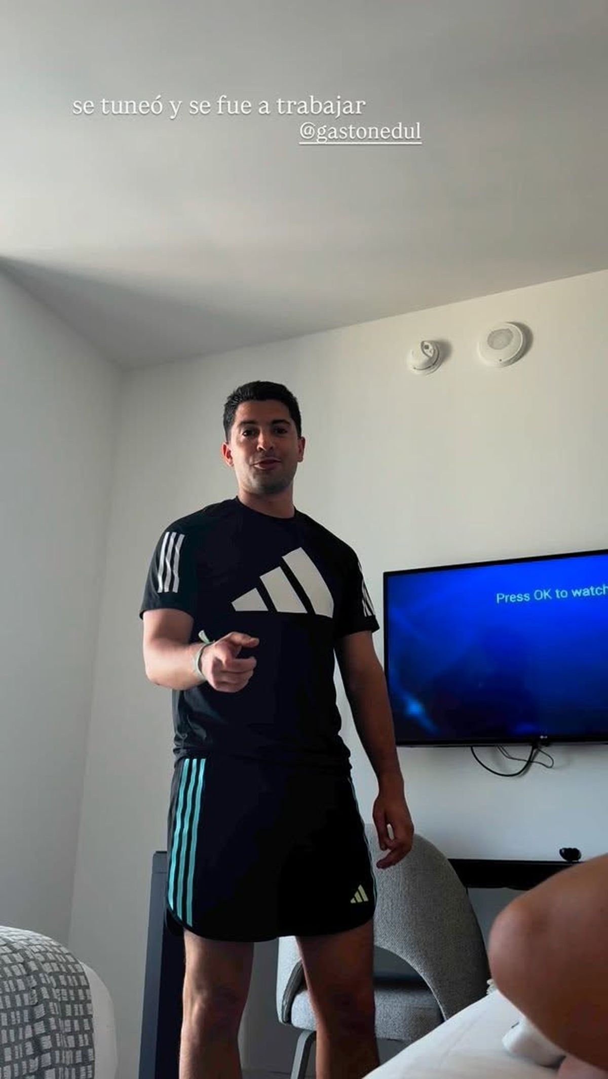 Fue Nati Jota quien hizo el posteo. A través de sus stories, Nati Jota comunicó su regreso de Miami y grabó a Gastón Edul en su cuarto despidiéndola. "Se tuneó y se fue a trabajar", escribió la rubia junto al video.