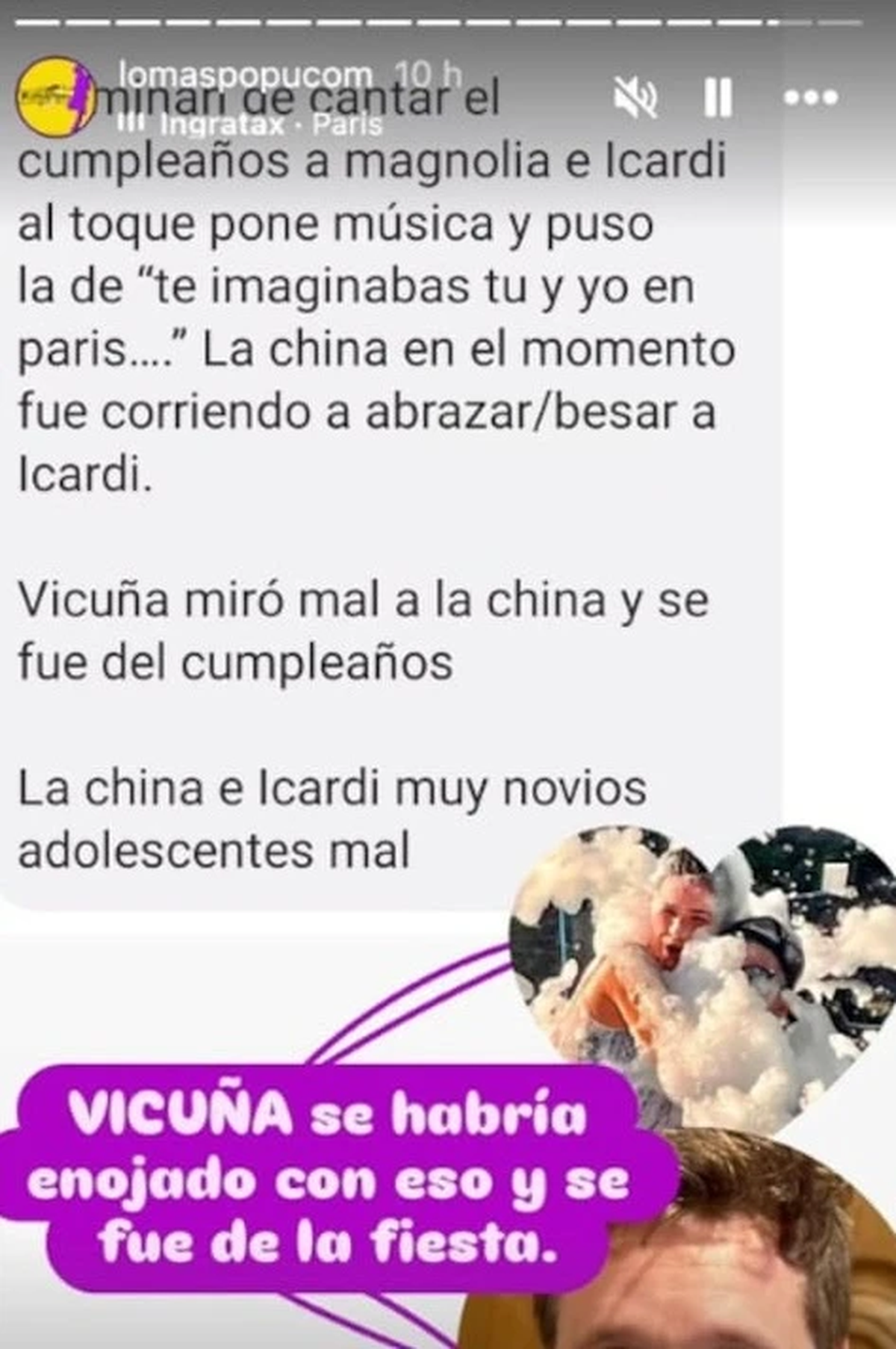 "Terminan de cantar el cumpleaños a Magnolia e Icardi al toque pone música y puso la de 'te imaginabas tú y yo en París'. La China en el momento fue corriendo a abrazar y besar a Icardi", reveló uno de los invitados a la celebración.