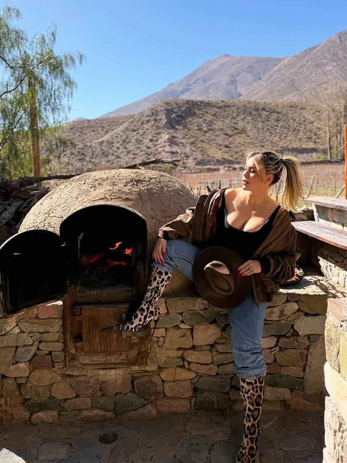 Ahora, Wanda Nara sorprendió a sus seguidores jugándosela con un atuendo de lo más glam y llamativo. A pesar del terreno, Wanda se lució con unas botas de taco alto animal print, bodysuit mega cavado, jeans y tapado de piel, imposible de pasar desapercibido.