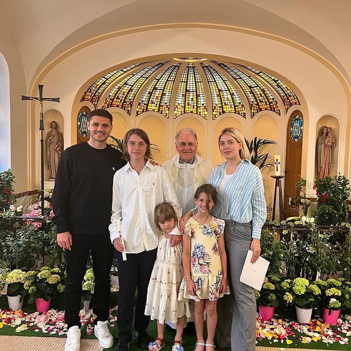 La rubia estuvo acompañada por Mauro Icardi y sus hijas Francesca e Isabela llamando la atención la ausencia de Maxi López, padre de Valentín, Benedicto y Constantino.