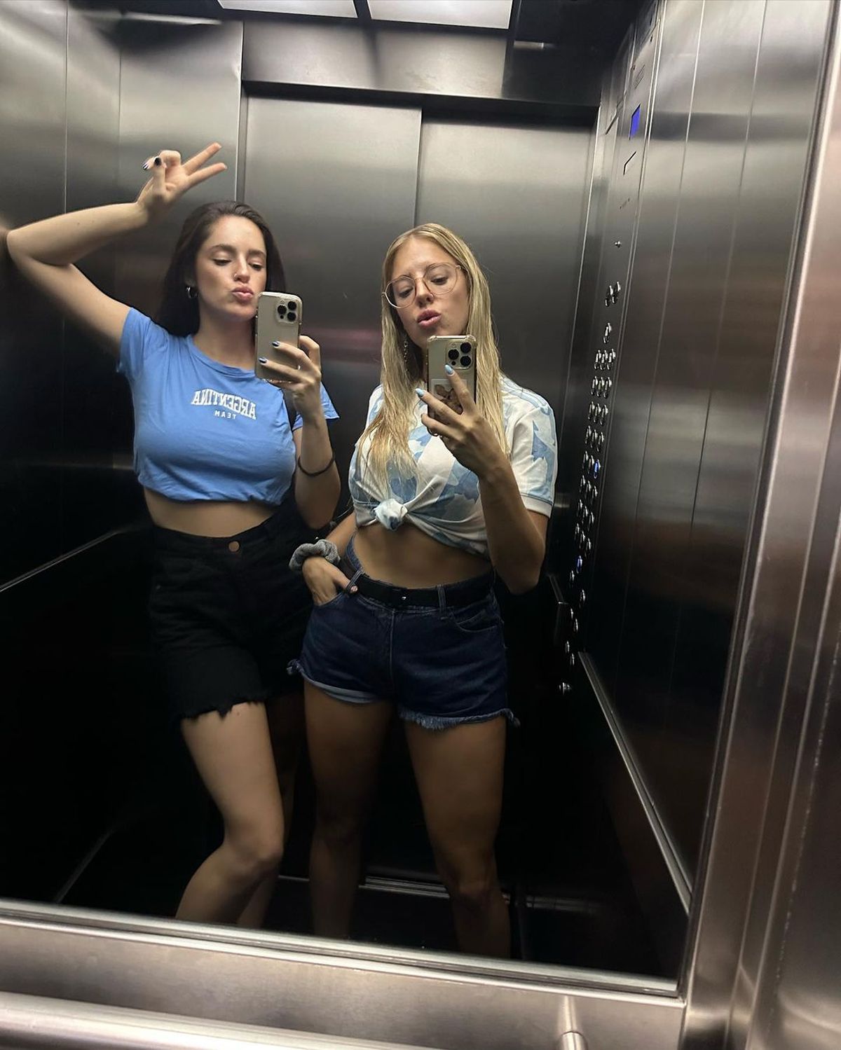 Nati Jota volvió a presumir su figura con unos shorts de jean súper cortitos que combinó con una camiseta y posó acompañada por su hermana, Luli Jota.