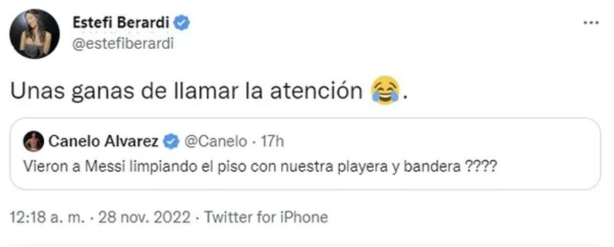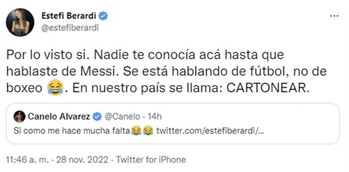 Estefanía Berardi atendió al Canelo Álvarez y lo dejó en ridículo, tras la insólita e inesperada polémica entre el boxeador y Lionel Messi.