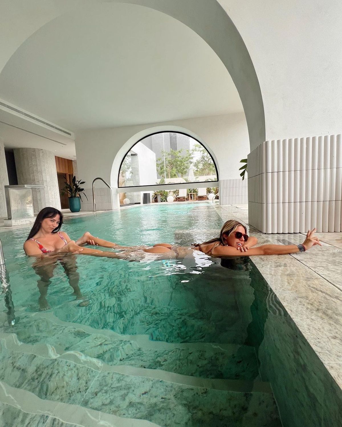 La diosa junto a Lelu Melendy, disfrutó de un día de relax y pileta y aprovechó para mostrar su lomazo luciendo una micro-bikini colaless color nude súper sexy.