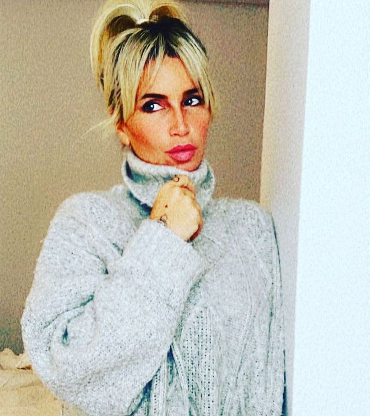 En la imagen, se puede ver a Florencia Peña posando contra una pared enfudnada en una micro tanga súper chiquita y crop top gris que marcaba su cintura a la perfección.