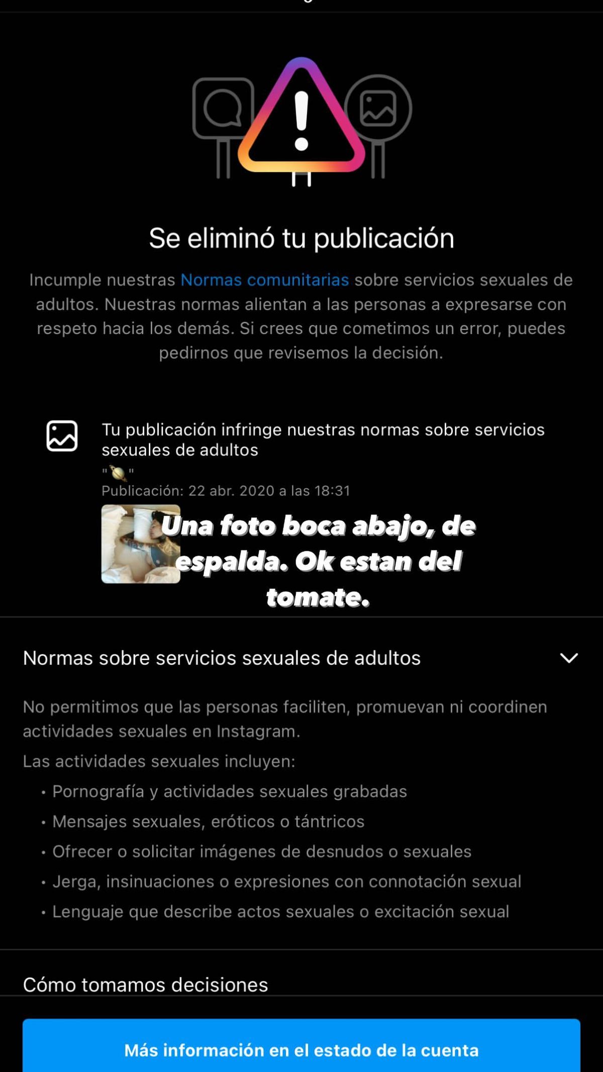 "Una foto boca abajo de espalda. Ok, están del tomate", escribió picante.