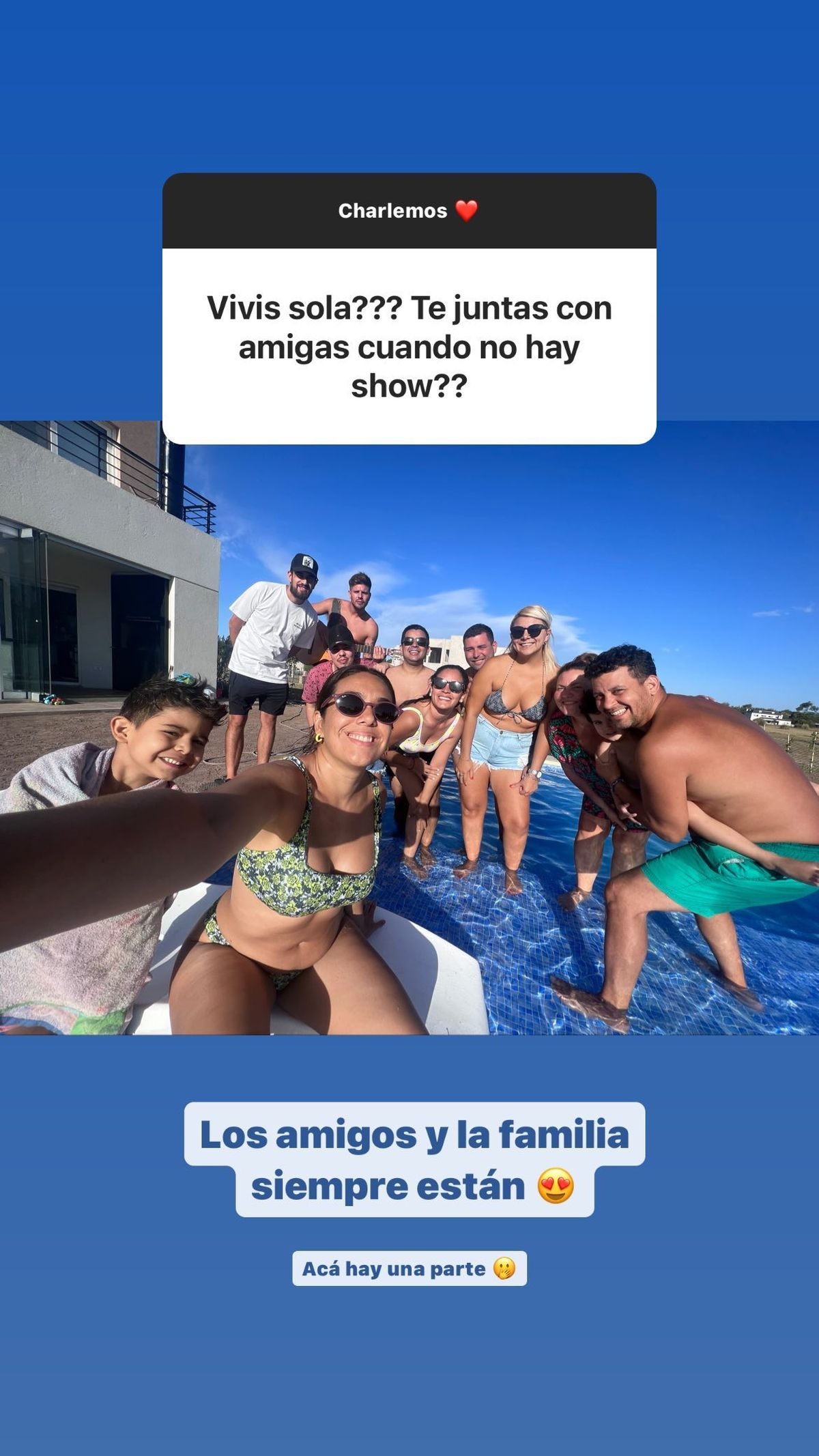 Además, la cantante compartió una postal desde la pileta junto a familiares y amigos y una vez más no dudó en mostrar sus curvas al natural.