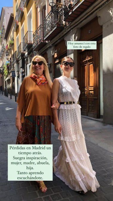 “Hoy amanecí con esta foto de regalo. Perdidas en Madrid un tiempo atrás. Suegra, inspiración, mujer, madre, abuela, hija. Te aprendo escuchándote”, escribió la actriz junto a la foto que demuestra la gran relación que tiene con la madre del actor chileno.