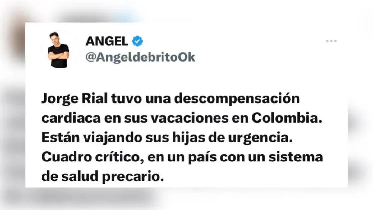 "Me llegó una noticia que me dejó en shock. Jorge Rial tuvo una descompensación cardiaca en sus vacaciones en Colombia”, escribía De Brito en su primer tweet para luego agregar más información y revelar la primera foto de sus hijas Rocío y Morena embarcando para Colombia.