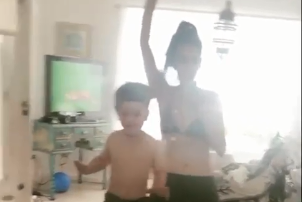 La hija de Nicolás, se grabó bailando con el pequeño con un look súper casero de mini y bikini.