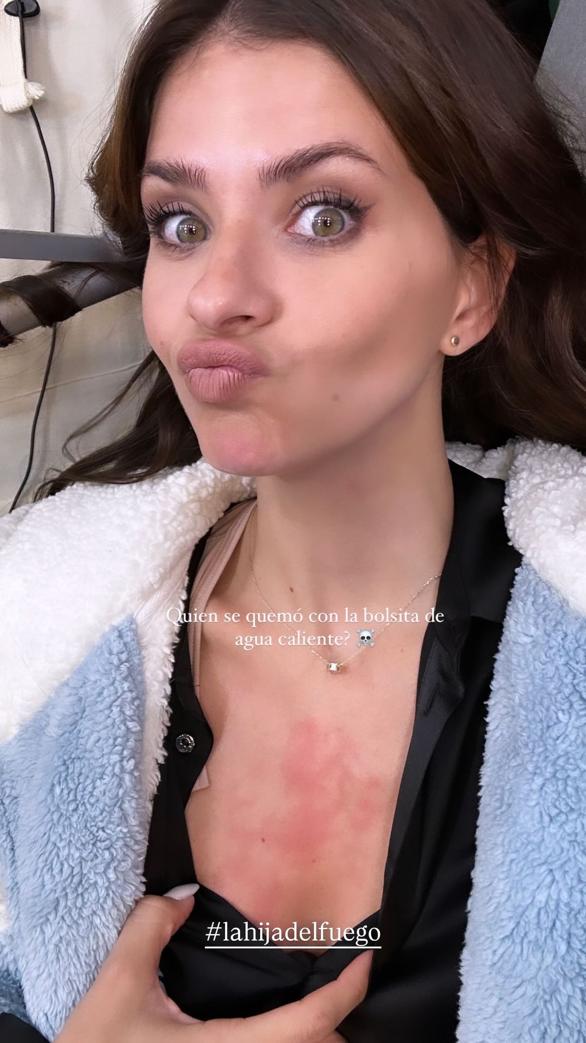 "¿Quién se quemó con la bolsita de agua caliente?", escribió dejando a la vista las manchas coloradas que quedaron en su piel luego de su pequeño incidente.