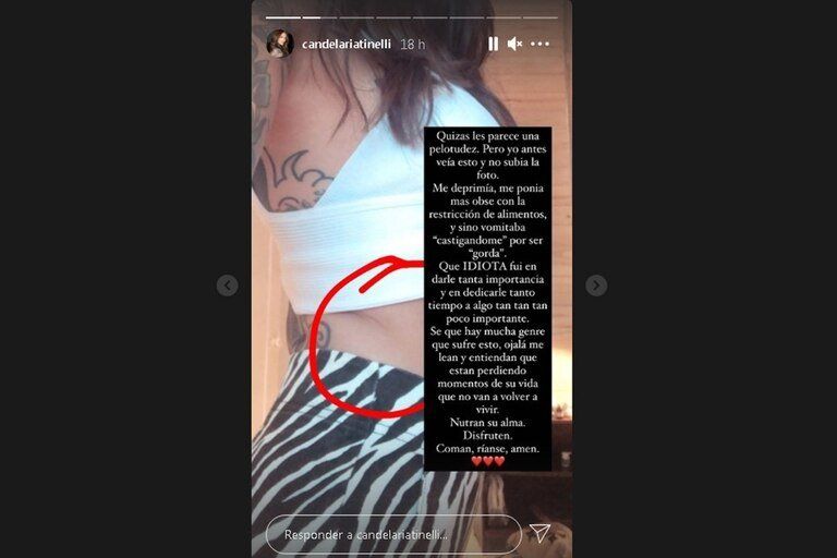 Cande Tinelli sorprendió a sus fans y revolucionó las redes con una impactante rfelxión. La hija de Marcelo Tinelli recordó su lucha contra la bulimia y la anorexia y habló de sus viejos hábitos.