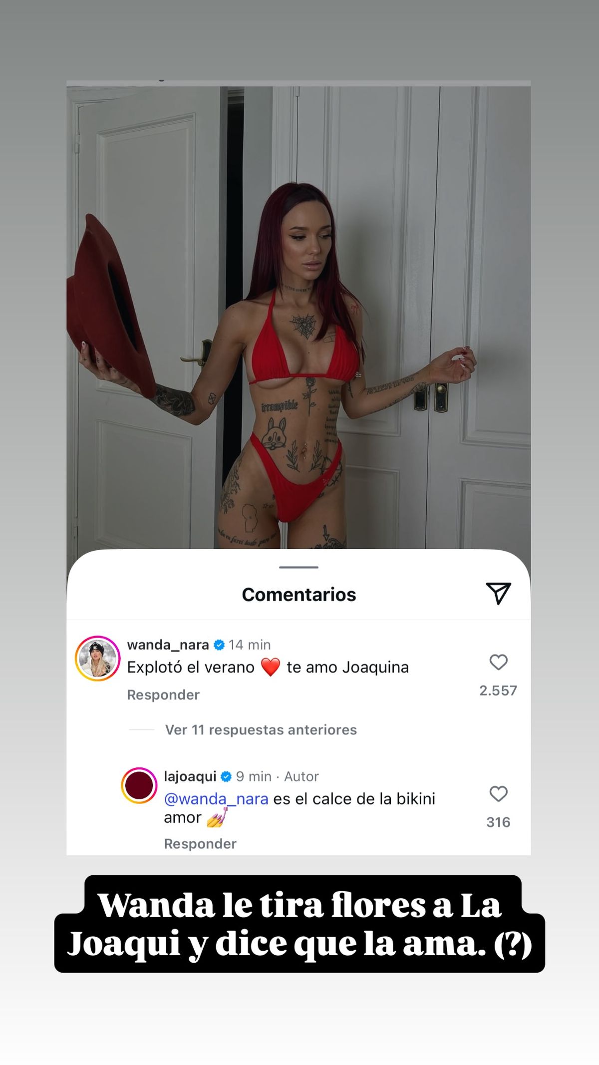 Además de robarse la atención con su lomazo, la Joaqui recibió un comentario de Wanda Nara imposible de pasar desapercibido. "Explotó el verano...Te amo Joaquina", escribió la top.