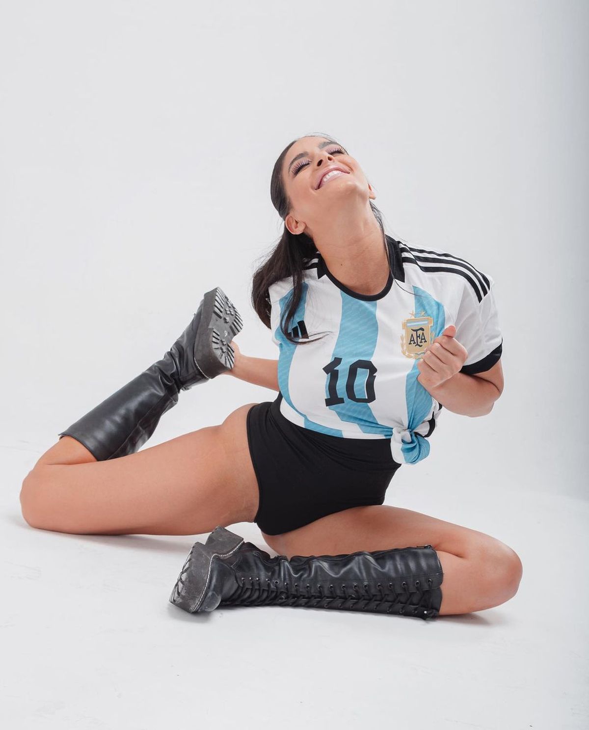 Una de ellas fue Alejandra Maglietti, que lució muy sexy en las celebraciones de este domingo. Con un shoro muy corto y una camiseta argentina, la panelista se mostró más sexy que nunca entre medio de miles de personas.
