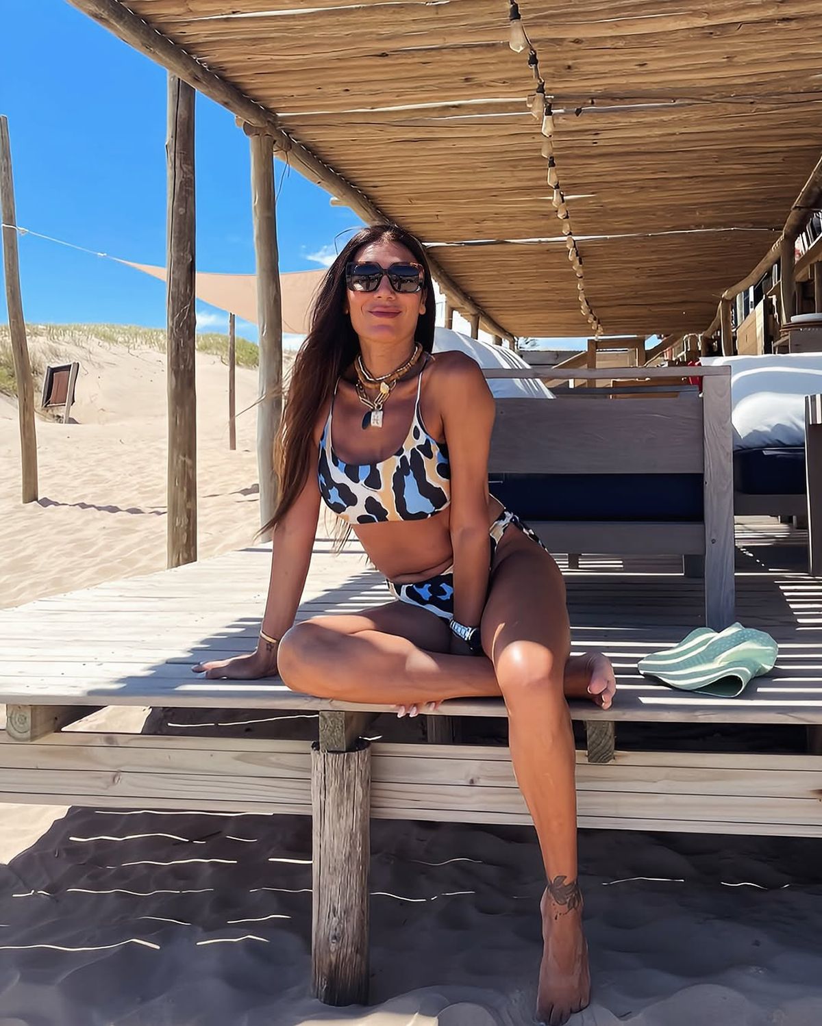 La ex conductora de Intrusos apostó por una microbikini animal print de bombacha ultra cavada tiro alto y corpiño estilo deportivo y las imágenes provocaron furor en las redes.