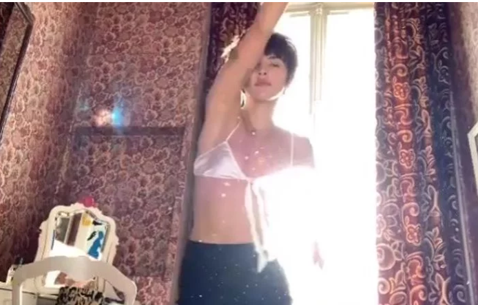 La actriz mostró un video donde se la ve bailando y realizando movimientos sensuales de cintura frente al ventanal y con la luz del amanecer asomando.