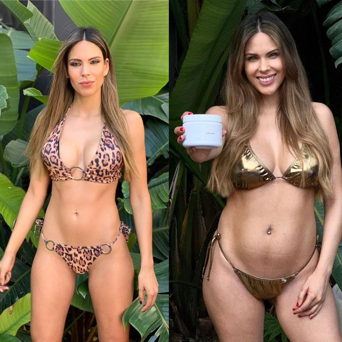 Fue la misma Barby quien comparó dos imágenes donde se la ve luciendo el mismo diseño dorado antes de estar embarazada y luego del nacimiento de su pequeña sintiéndose más orgullosa y feliz que nunca de sus curvas.