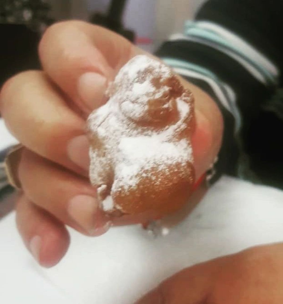 "Día de lluvia, haces buñuelos y te salen con formas, ¿a ustedes les pasa? ¿A quién se parece?", preguntó junto a una foto de su particular buñuelo.