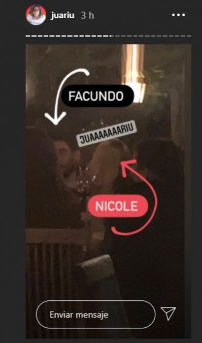 Según mostró Juariu en su cuenta de Instagram, Moyano aparece cerca de Neumann en una foto que le llegó a la instagramer y panelista de "Bendita".
