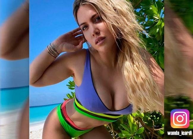 Relajada sobre una colchoneta y con un traje de baño súper cavado, Wanda se broncea como toda una diva.