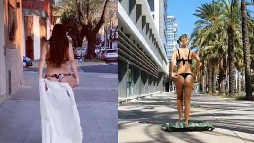 La Instagramer subió un material al ritmo del clásico Mujer bonita en el que se la ve desfilando desde atrás con una bata que luego deja caer para quedar en bikini.